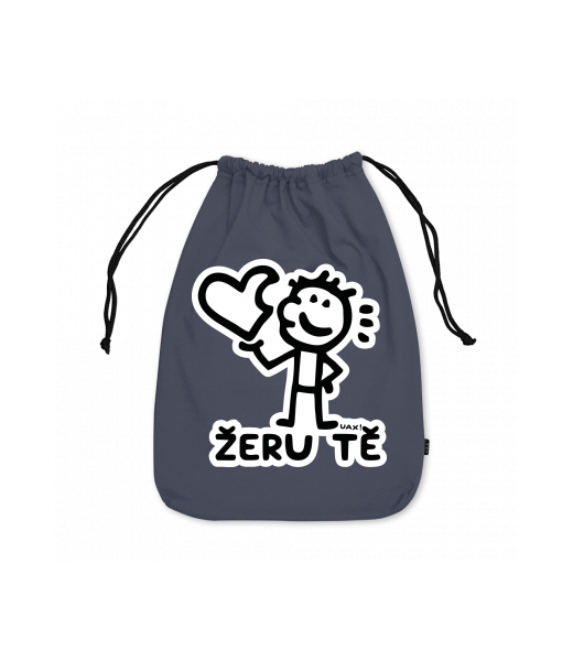 Medium cotton pouch for kid with design 1244 ŽERU TĚ in color GRAY INK