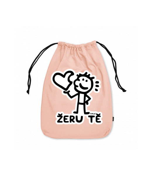 Medium cotton pouch for kid with design 1244 ŽERU TĚ in color PEACH