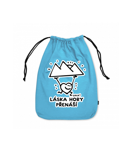 Medium cotton pouch for kid with design 1264 LÁSKA HORY PŘENÁŠÍ in color BLUE ATOLL