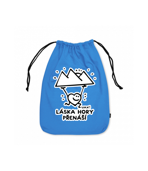 Medium cotton pouch for kid with design 1264 LÁSKA HORY PŘENÁŠÍ in color CAPRI BLUE