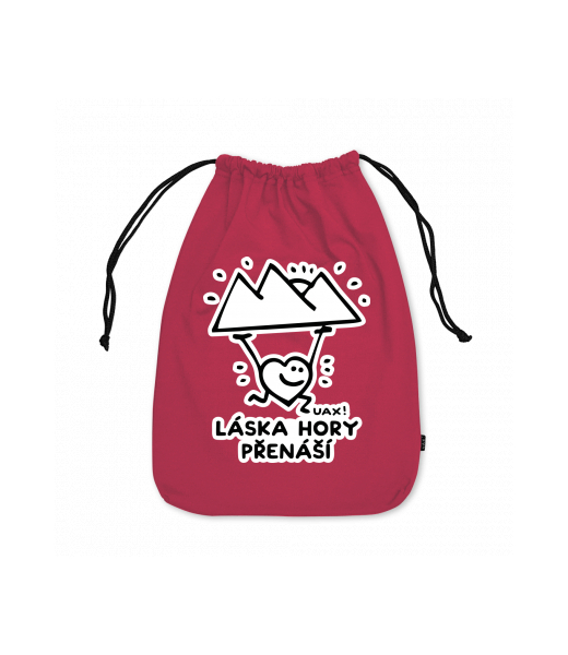 Medium cotton pouch for kid with design 1264 LÁSKA HORY PŘENÁŠÍ in color CHILLY PEPPER RED