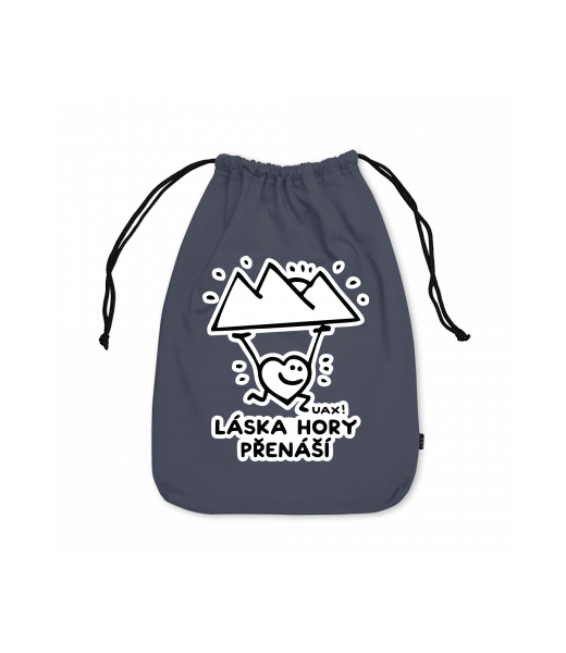 We make sustainable UAX clothing! - hand sewn in the Czech Republic uaxKids uaxAll productsBags and sacksMEDIUM COTTON POUCHdesign 1264 - LÁSKA HORY PŘENÁŠÍGRAY INK