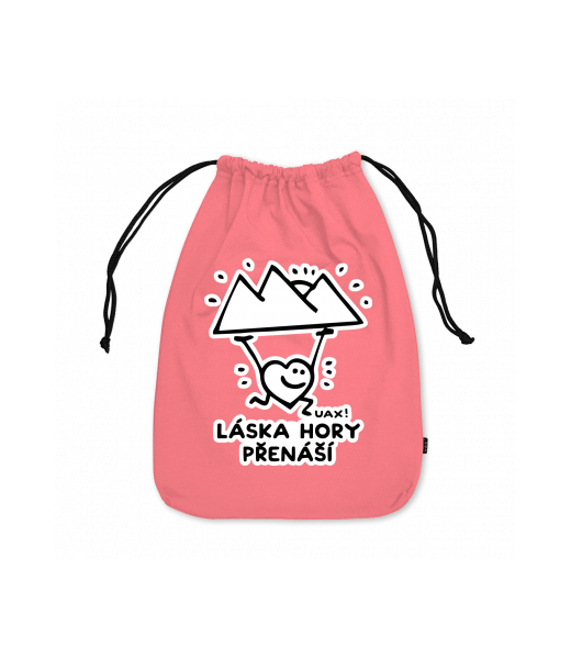 Medium cotton pouch for kid with design 1264 LÁSKA HORY PŘENÁŠÍ in color LOSOSOVA