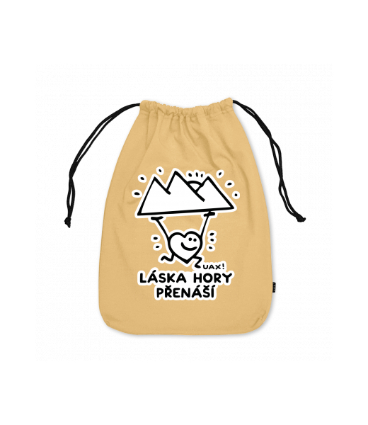 We make sustainable UAX clothing! - hand sewn in the Czech Republic uaxKids uaxAll productsBags and sacksMEDIUM COTTON POUCHdesign 1264 - LÁSKA HORY PŘENÁŠÍMUSTARD