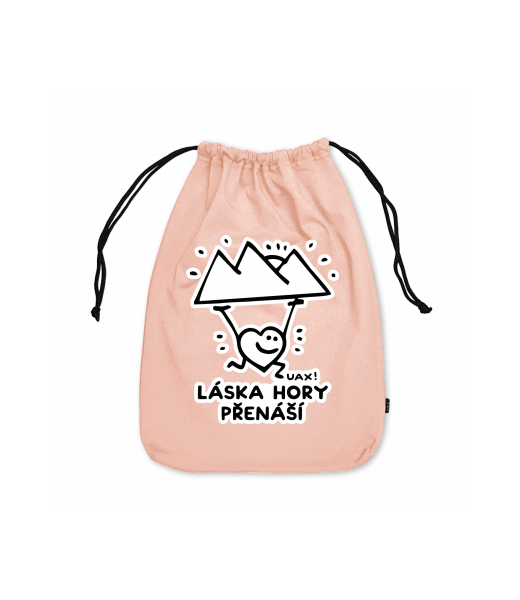 Medium cotton pouch for kid with design 1264 LÁSKA HORY PŘENÁŠÍ in color PEACH