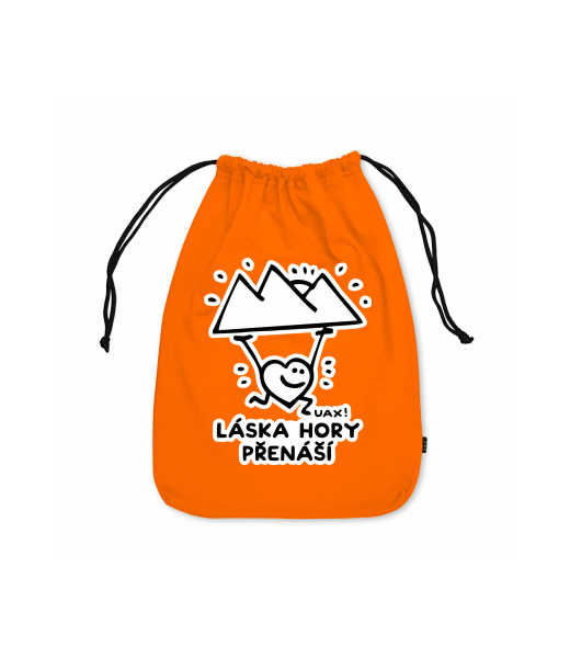 Medium cotton pouch for kid with design 1264 LÁSKA HORY PŘENÁŠÍ in color SIGNAL ORANGE