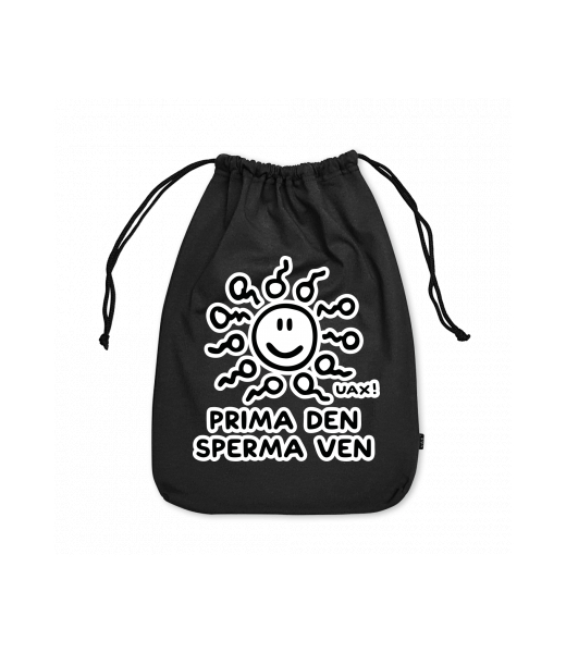 Medium cotton pouch for kid with design 1265 PRIMA DEN SPERMA VEN in color BLACK