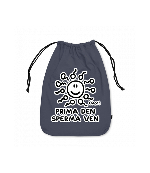 Medium cotton pouch for kid with design 1265 PRIMA DEN SPERMA VEN in color GRAY INK