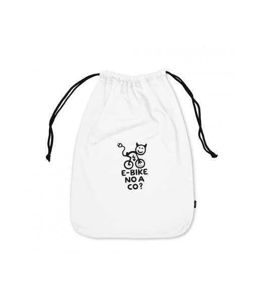 Medium cotton pouch for kid with design 1291 E-BIKE NO A CO? in color WHITE