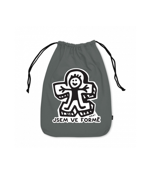 Medium cotton pouch for kid with design 1351 JSEM VE FORMĚ in color DARK GRAY