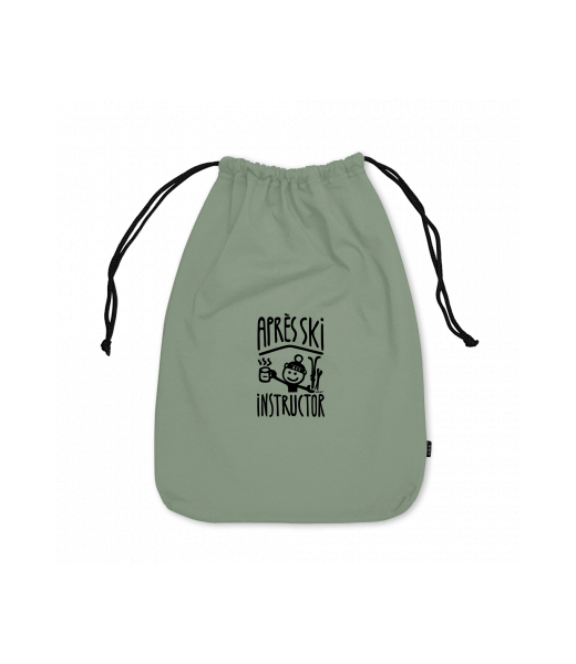 Medium cotton pouch for kid with design 1367 APRÉS SKI INSTRUCTOR in color OLIVA