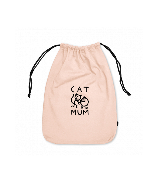 Medium cotton pouch for kid with design 1375 CAT MUM in color CAPPUCINO