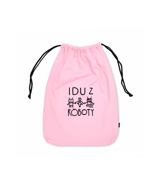 Medium cotton pouch for kid with design 1377 IDU Z ROBOTY 2 in color BABY PINK