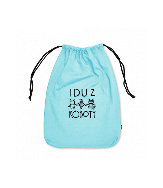 Medium cotton pouch for kid with design 1377 IDU Z ROBOTY 2 in color PASTEL BLUE