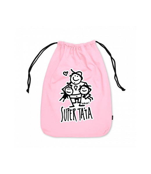 Medium cotton pouch for kid with design 1390 SUPER TÁTA in color BABY PINK