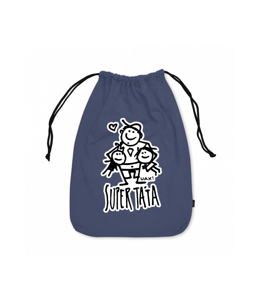 Medium cotton pouch for kid with design 1390 SUPER TÁTA in color JEANS