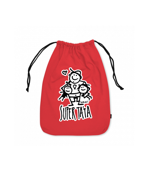 Medium cotton pouch for kid with design 1390 SUPER TÁTA in color RED