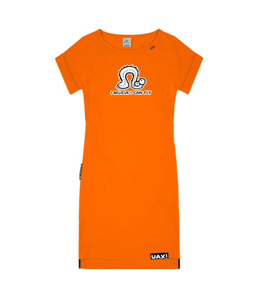 We make sustainable UAX clothing! - hand sewn in the Czech Republic uaxKids uaxAll productsDressKID'S DRESS BASICdesign 1062 - I BELIVE I CAN FLYSIGNAL ORANGE