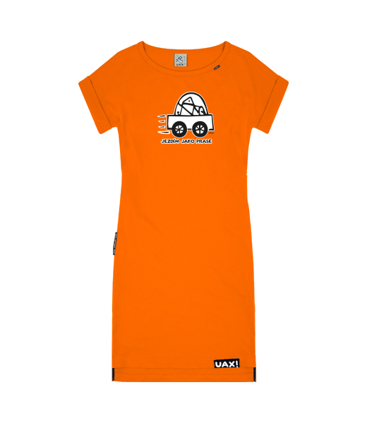 We make sustainable UAX clothing! - hand sewn in the Czech Republic uaxKids uaxAll productsDressKID'S DRESS BASICdesign 1072 - JEZDÍM JAKO PRASESIGNAL ORANGE