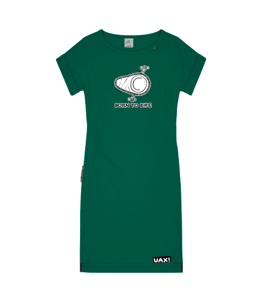 We make sustainable UAX clothing! - hand sewn in the Czech Republic uaxKids uaxAll productsDressKID'S DRESS BASICdesign 1074 - BORN TO BIKEUNIVERSITY GREEN