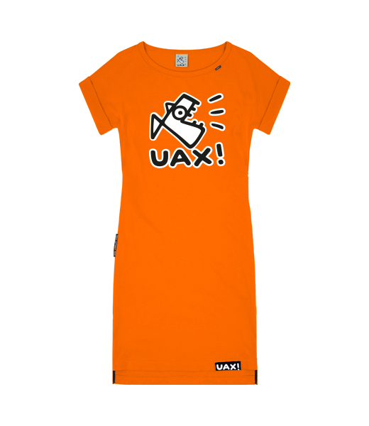 We make sustainable UAX clothing! - hand sewn in the Czech Republic uaxKids uaxAll productsDressKID'S DRESS BASICdesign 1086 - LOGO UAX!SIGNAL ORANGE