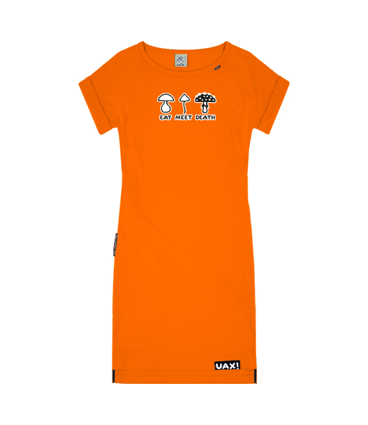 We make sustainable UAX clothing! - hand sewn in the Czech Republic uaxKids uaxAll productsDressKID'S DRESS BASICdesign 1177 - EAT MEET DEATHSIGNAL ORANGE