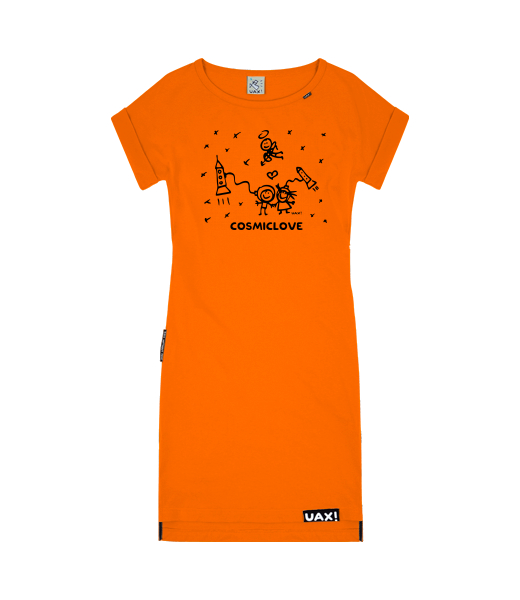 We make sustainable UAX clothing! - hand sewn in the Czech Republic uaxKids uaxAll productsDressKID'S DRESS BASICdesign 1207 - COSMICLOVESIGNAL ORANGE