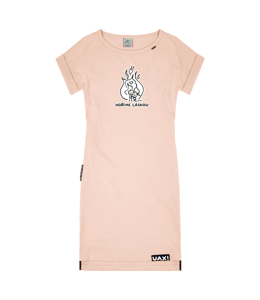 We make sustainable UAX clothing! - hand sewn in the Czech Republic uaxKids uaxAll productsDressKID'S DRESS BASICdesign 1208 - HOŘÍME LÁSKOUCAPPUCINO