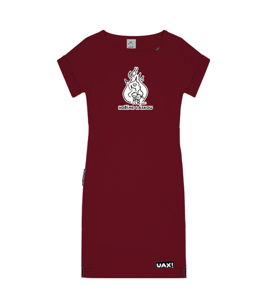 We make sustainable UAX clothing! - hand sewn in the Czech Republic uaxKids uaxAll productsDressKID'S DRESS BASICdesign 1208 - HOŘÍME LÁSKOUDARK RED