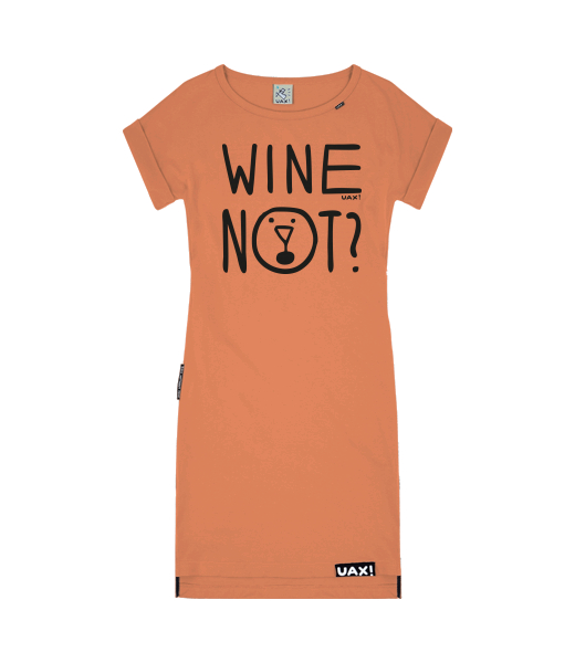 Kid's dress BASIC with original prints for kid with design 1210 WINE NOT in color MANDARIAN ORANGE
