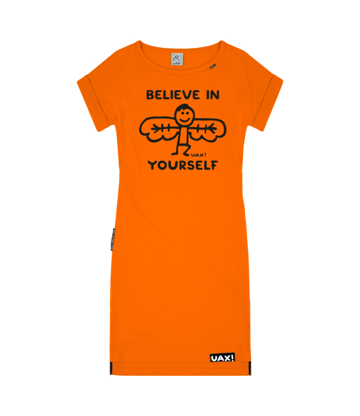 We make sustainable UAX clothing! - hand sewn in the Czech Republic uaxKids uaxAll productsDressKID'S DRESS BASICdesign 1228 - BELIEVE IN YOURSELFSIGNAL ORANGE