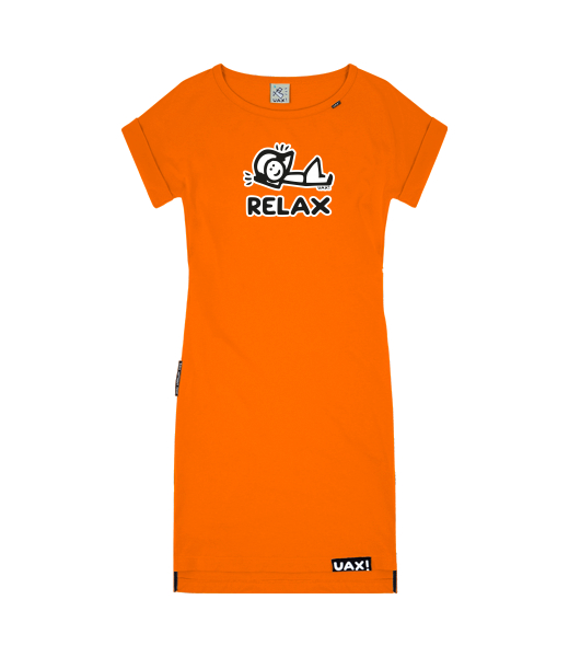 Kid's dress BASIC with original prints for kid with design 1236 RELAX in color SIGNAL ORANGE