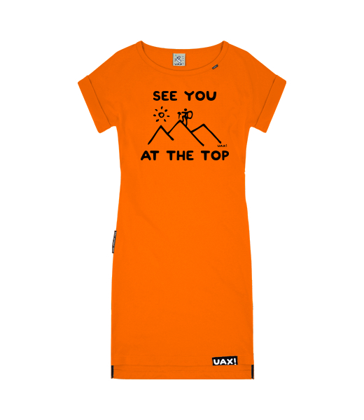 Kid's dress BASIC with original prints for kid with design 1263 SEE YOU AT THE TOP in color SIGNAL ORANGE