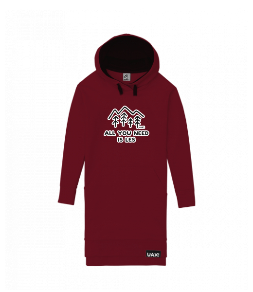 KIDS SWEATSHIRT DRESS LONG for kid with design 1279 ALL YOU NEED IS LES in color DARK RED