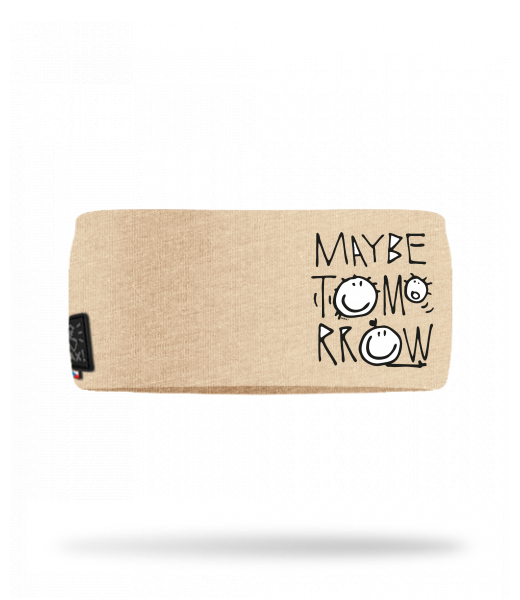 Cotton sports headband for kid with design 1001 MAYBE TOMORROW in color CARAMEL