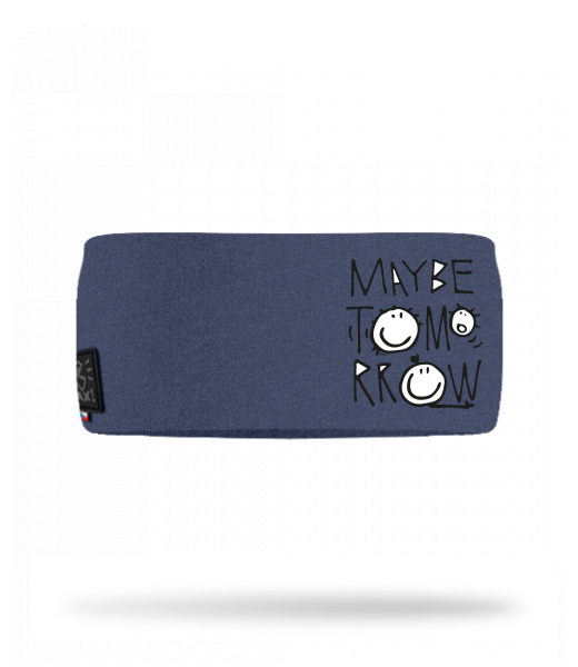 Cotton sports headband for kid with design 1001 MAYBE TOMORROW in color JEANS