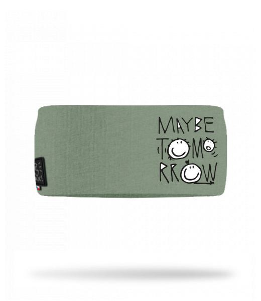 Cotton sports headband for kid with design 1001 MAYBE TOMORROW in color OLIVA