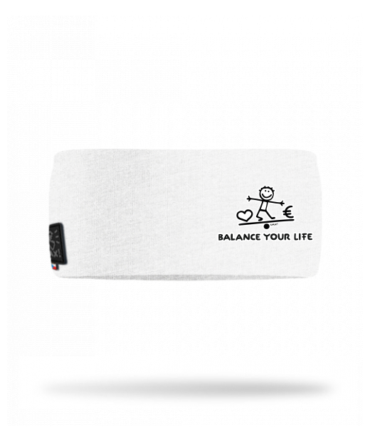 Cotton sports headband for kid with design 1039 BALANCE YOUR LIFE in color WHITE