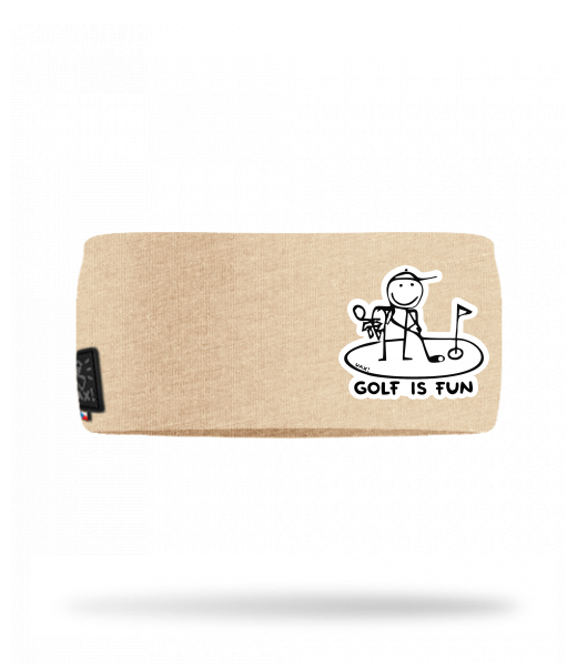 Cotton sports headband for kid with design 1057 GOLF IS FUN in color CARAMEL