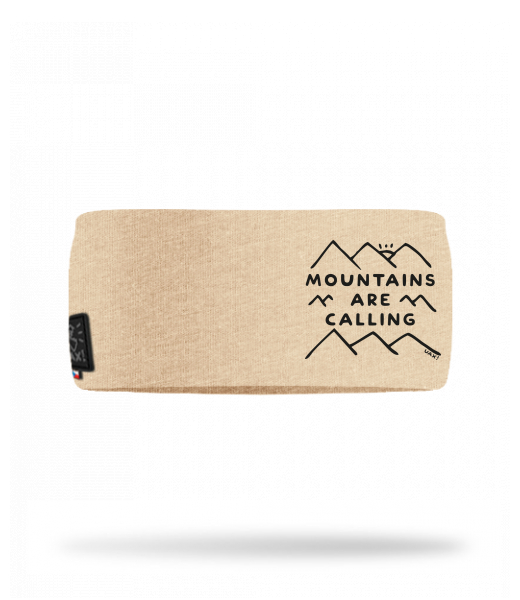 Cotton sports headband for kid with design 1204 MOUNTAINS ARE CALLING in color CARAMEL