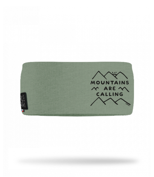 Cotton sports headband for kid with design 1204 MOUNTAINS ARE CALLING in color OLIVA
