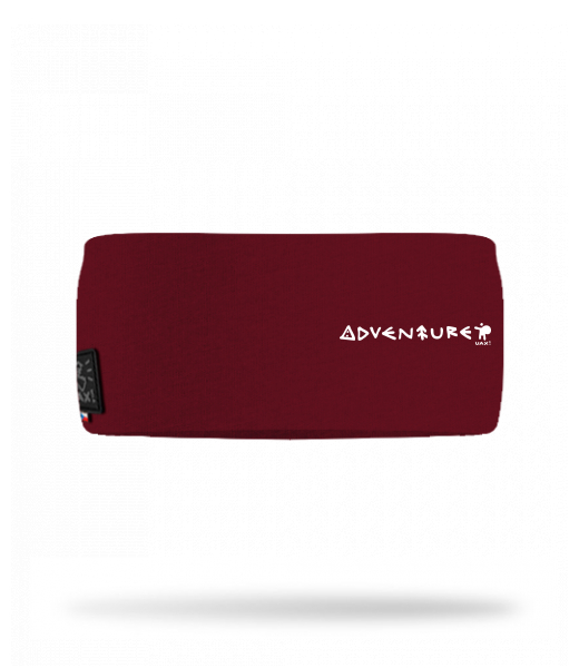 Cotton sports headband for kid with design 1212 ADVENTURE in color DARK RED