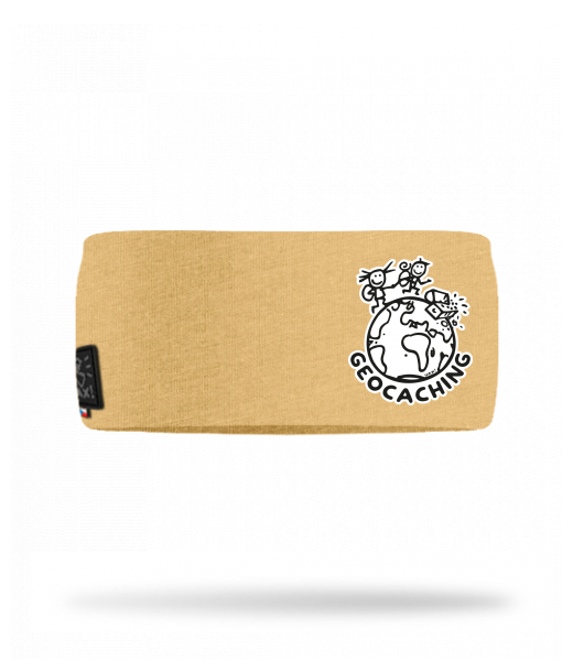 Cotton sports headband for kid with design 1215 GEOCACHING in color MUSTARD