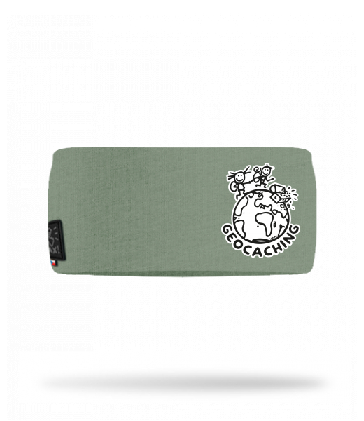 Cotton sports headband for kid with design 1215 GEOCACHING in color OLIVA