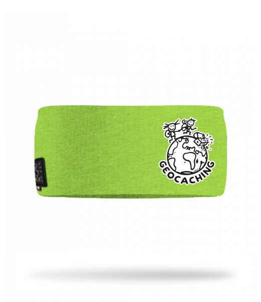 Cotton sports headband for kid with design 1215 GEOCACHING in color PARROT GREEN