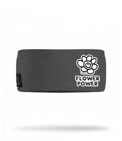 Cotton sports headband for kid with design 1227 FLOWER POWER in color GRAFIT