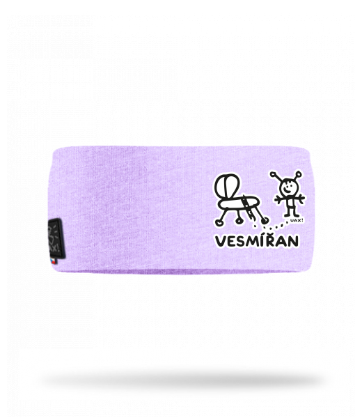 Cotton sports headband for kid with design 1232 VESMÍŘAN in color LAVENDER
