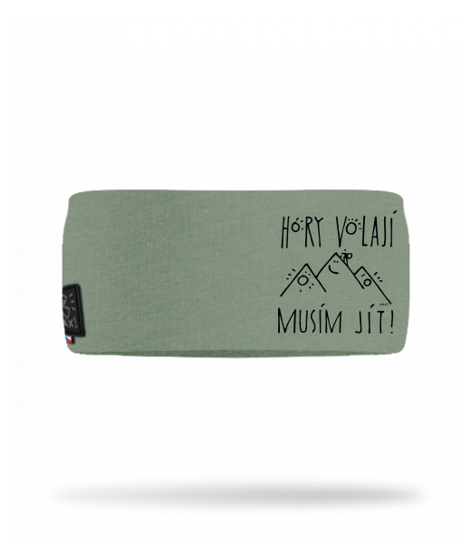 Cotton sports headband for kid with design 1233 HORY VOLAJÍ MUSÍM JÍT in color OLIVA