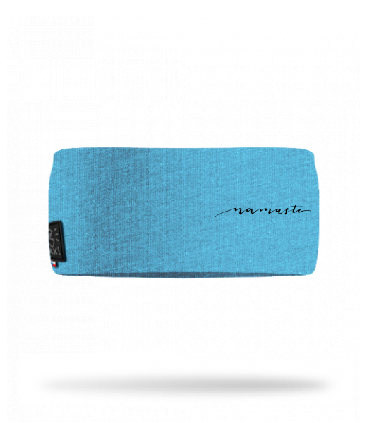 Cotton sports headband for kid with design 1234 NAMASTE in color BLUE ATOLL