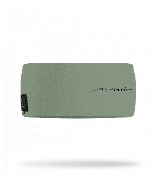 Cotton sports headband for kid with design 1234 NAMASTE in color OLIVA